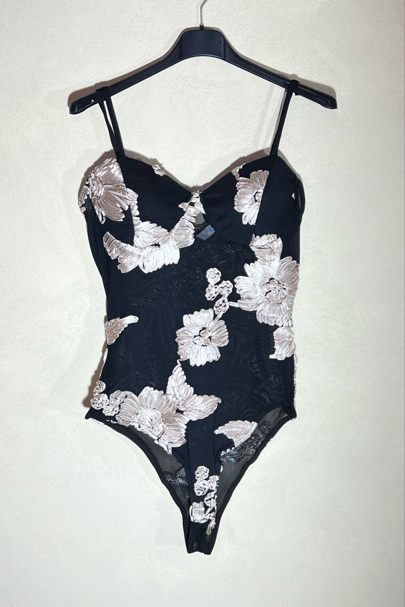 Body in tulle con ricami floreali, coppette preformate e spalline regolabili. Bellissimo anche da usare come sotto giacca. La coppetta va bene fino a taglia 3