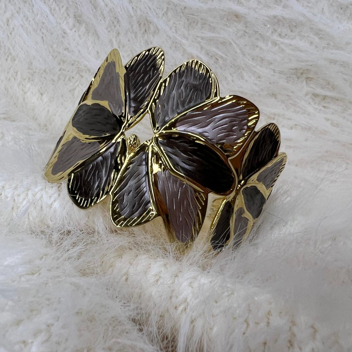 Bracciale regolabile con rappresentazione floreale su base gold.