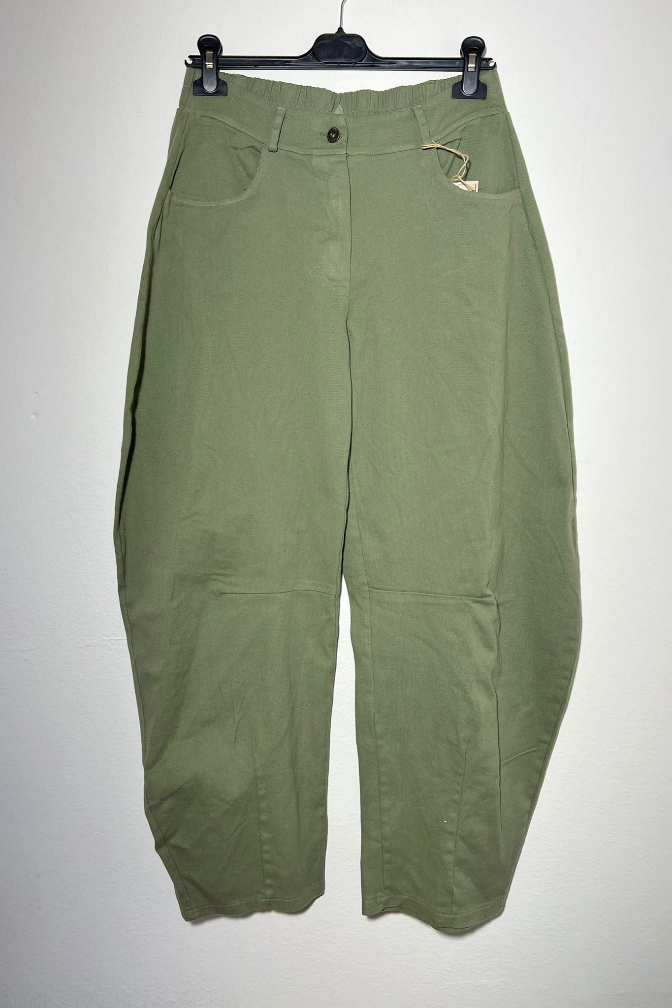 Jeans modello ballon elasticizzato in vita con tasche anche posteriori, passanti, zip e bottone. Modello comodo e fresco, adatto sia per look da giorno che da sera se abbinato a qualcosa di raffinato o una scarpa col tacco. La particolarità di questo jeans è la sua vestibilità perchè non ha taglie, ma è taglia unica con un girovita che va dai 71 cm fino a 104 cm.