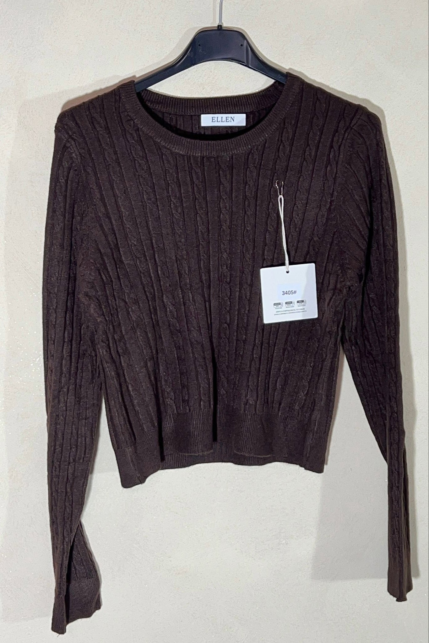 Maglioncino a girocollo, trama a treccine tipiche dei maglioncini caldi e invernali. Morbido ed elasticizzato.