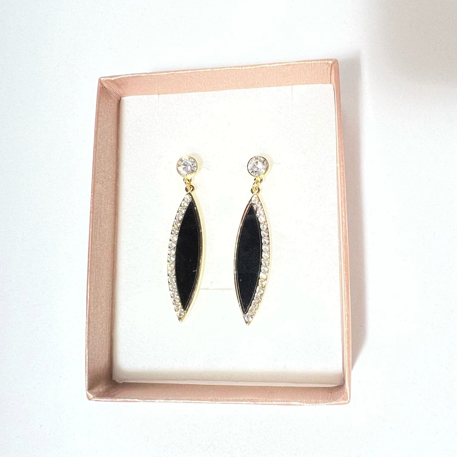 Orecchini di metallo con profilo in strass e goccia in resina colorata