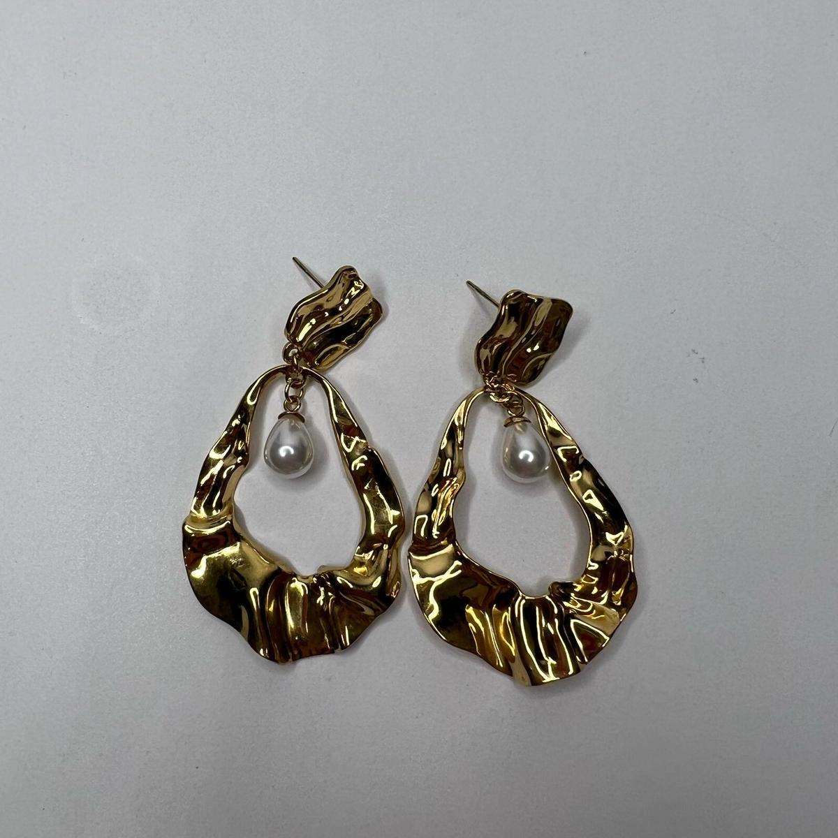 Orecchini in acciaio inossidabile in effetto picchiettato e perla pendente centrale