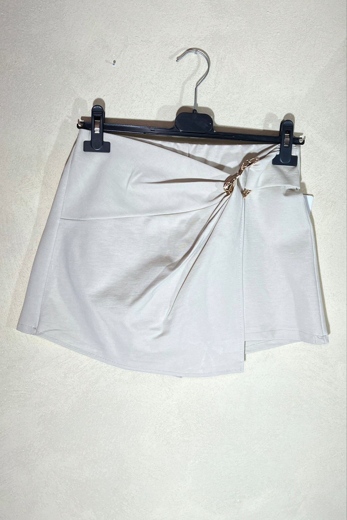 Pantagonna elasticizzata con intreccio sul davanti e inserto decorativo color oro. Perfetta per combinare diversi look, outfit ideali sia per il giorno che per la sera, senza dover rinunciare alla comodità. Vestibilità max fino a taglia M/L (42/44)