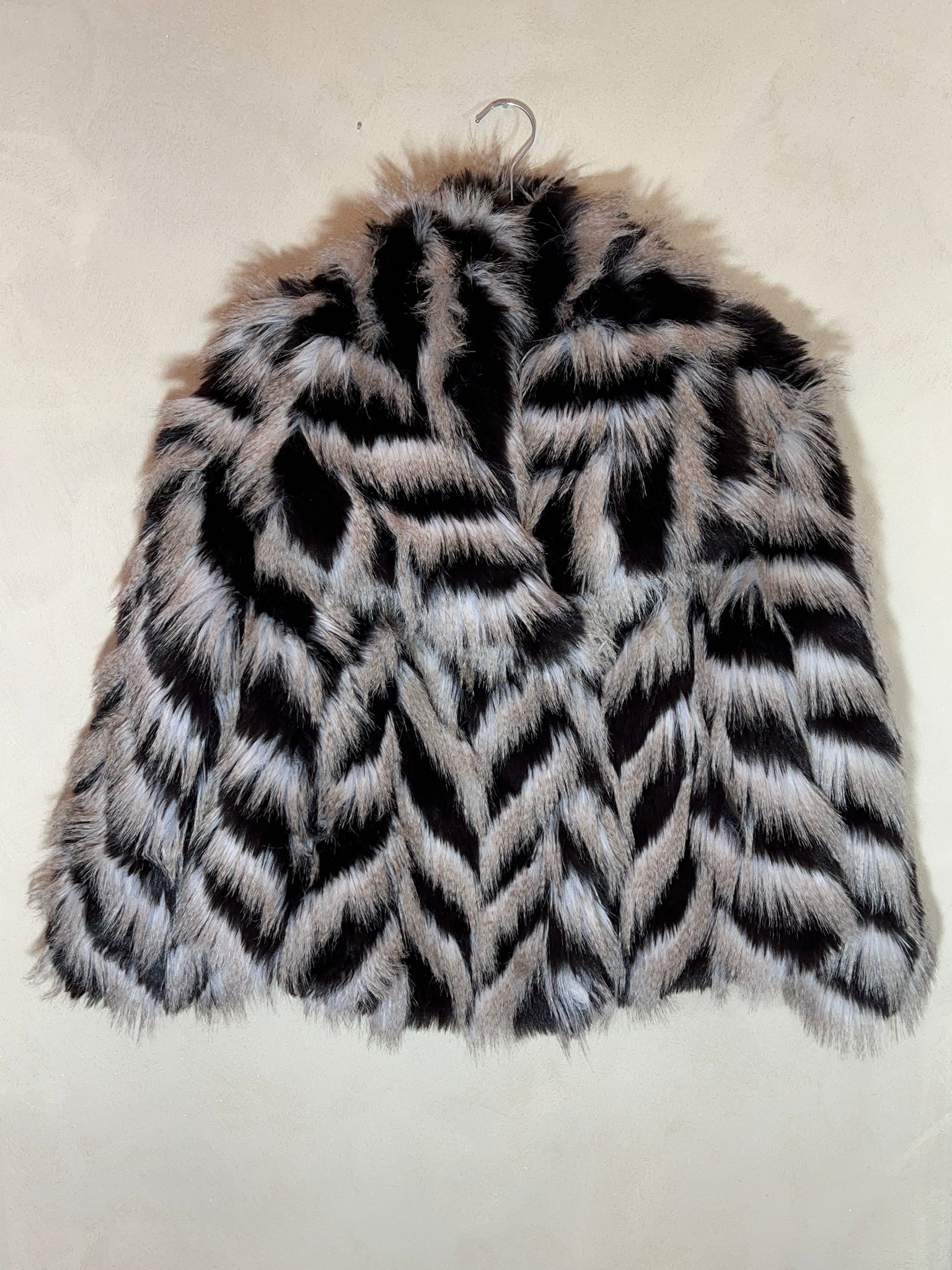 Pelliccia super morbida con chiusura a bottoni e tasche. La pelliccia ha una tinta veramente unica e singolare con diverse sfumature di colore che vanno dal beige a toni decisamente più scuri. Comodissima in quanto la vestibilità e over e avvolgente. Consigliata fino a taglia L/XL